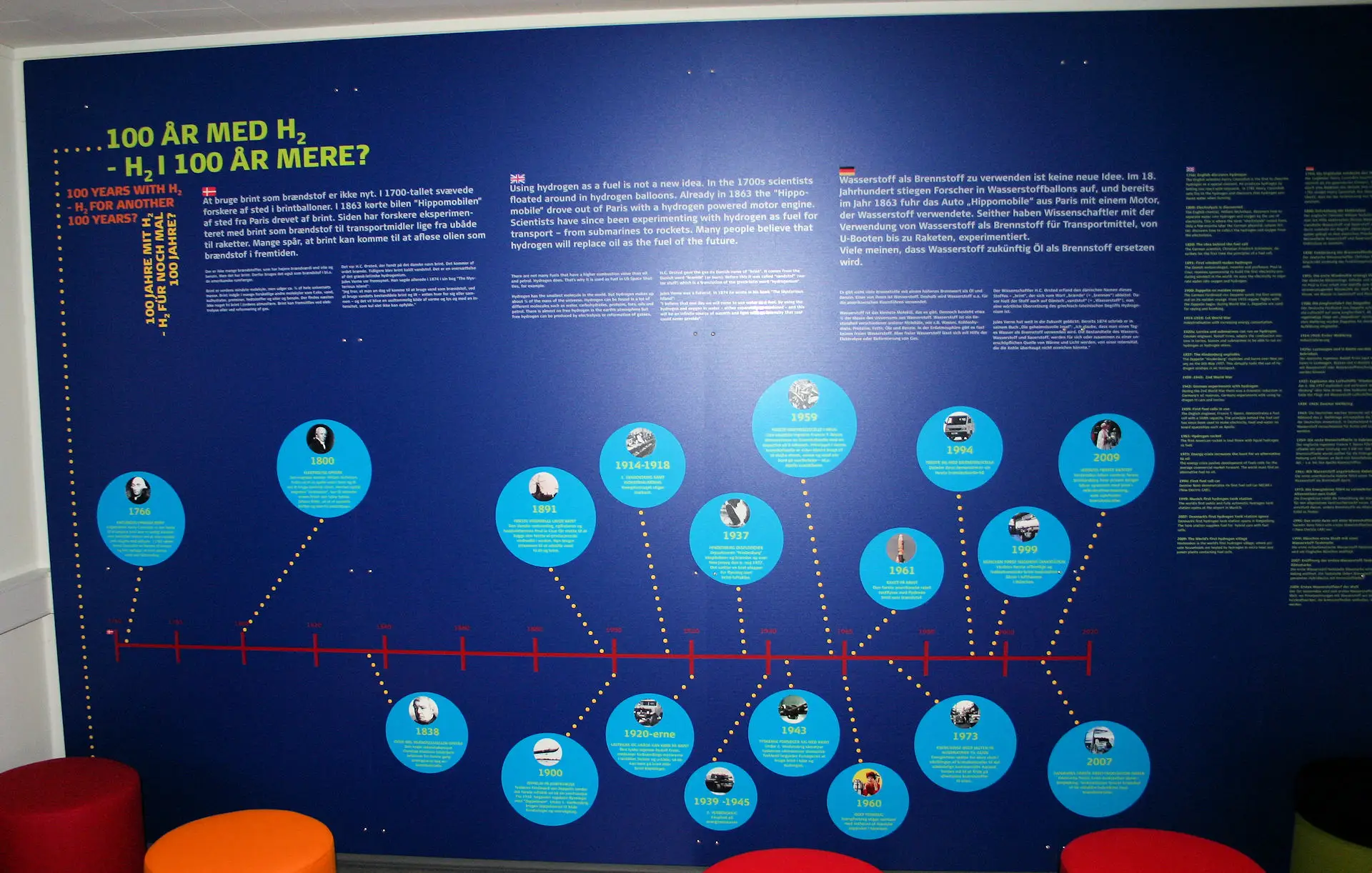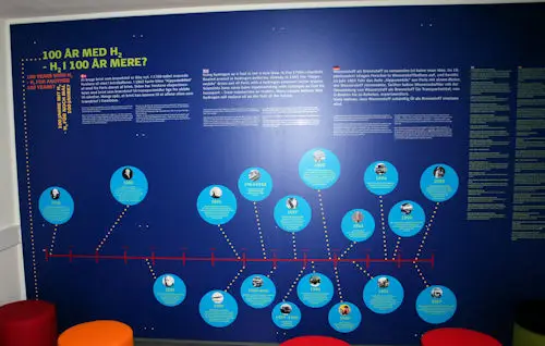 Da Lolland Kommune i samarbejde med aktører udi energi havde etableret “Brintlandsby Vestenskov”, var der et glimrende udstillingslokale. Her blev vi besøgende, på en fornem måde, guidet gennem de tanker, der var omkring projektet. Én af plancherne havde overskriften “100 år med H2 – H2 i 100 år mere ?”