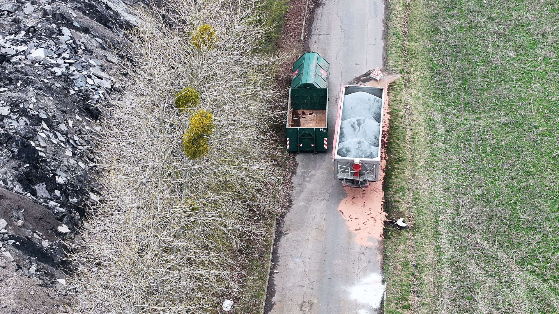 “Parkerede genstande ?” I det sidste mere end halve år er vejen anvendt til skrotplads. Dette oplag har lagt beslag på den sydlige vejbane.